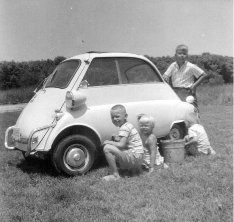 In 1957 my father purchase a white Isetta 300 and started a passion that has lasted until this day. He did not "fall in love" with the little car, but I did. I was four years old at the time. Like many Isettas in the late 50's to early 60's, this car did not stay on the road very long before it developed problems which could not be repaired by local mechanics. In 1962 my father purchased a red 300 for parts and the two cars were placed in storage. The photo below left shows my sister, two brothers and I near our "new" white Isetta in July 1958. This picture was taken as we were washing the car at our family's beach house located in North Myrtle Beach. (I'm the one looking at the rear wheel - oldest brother at rear of the car - "supervising").